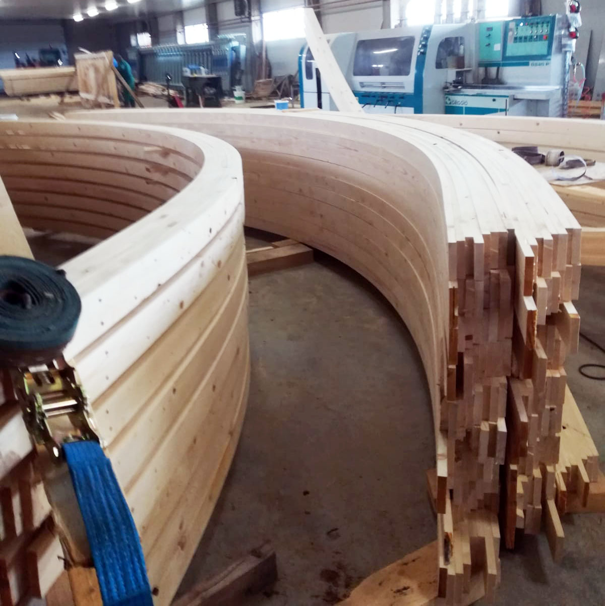 Grinzile curbate realizate prin stratificare și îmbinare în dinți reprezintă vârful de gamă în construcțiile din lemn. Această tehnologie combinată elimină complet defectele naturale ale lemnului și tensiunile interne, oferind o rezistență mecanică superioară și o stabilitate dimensională perfectă. Sunt ideale pentru structuri portante complexe unde precizia și estetica sunt critice.