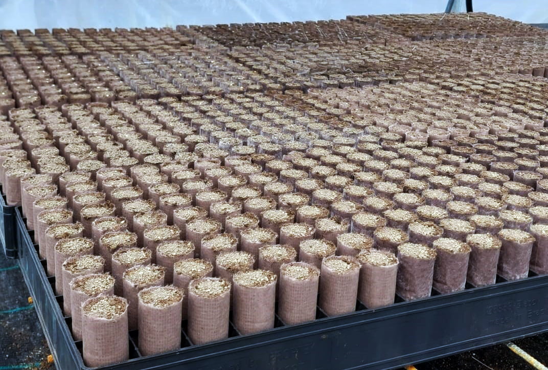Structura și Compoziția: Minicontainerele sunt proiectate sub formă de cilindri din compost presat, având dimensiuni optimizate pentru dezvoltarea radiculară: un diametru de 35 mm și o înălțime de 100 mm. Fiecare unitate este protejată de un înveliș din hârtie biodegradabilă specială. Acest material este selectat pentru durabilitatea sa ridicată, având un proces de degradare controlat care depășește un an, asigurând astfel integritatea puieților pe parcursul fazei de creștere și transport.
